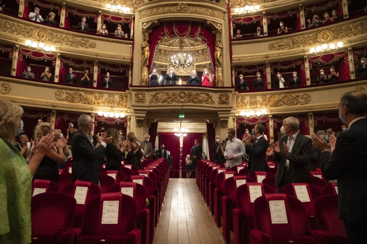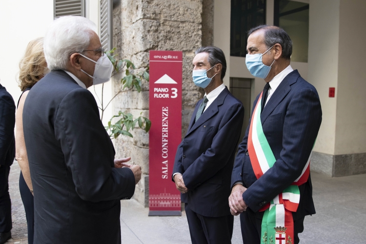 Il Presidente Sergio Mattarella e la Sig.ra Laura, con il Presidente della Regione Lombardia Attilio Fontana e il Sindaco di Milano Giuseppe Sala