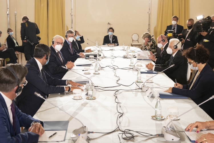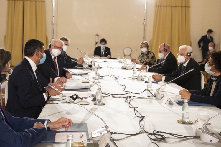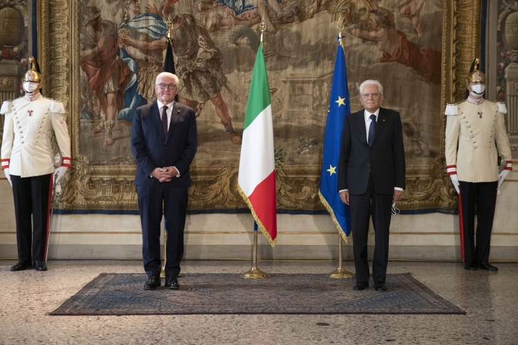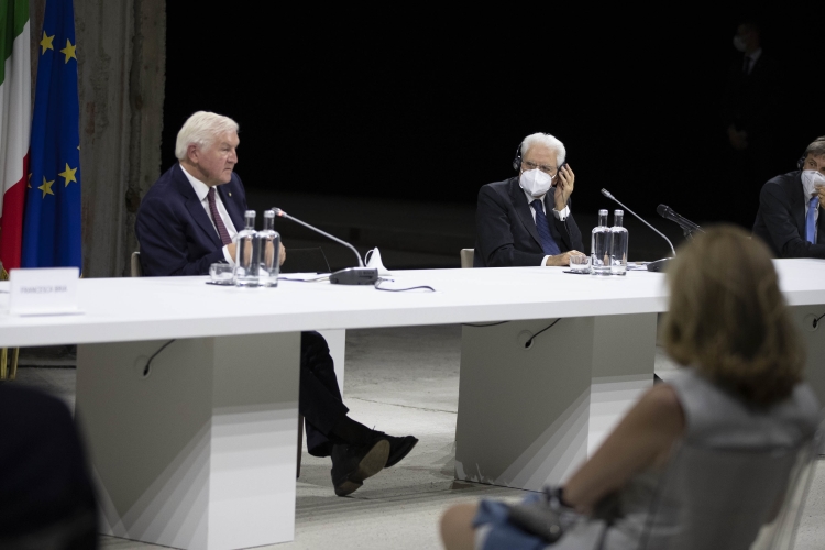 Il Presidente Sergio Mattarella e il Presidente della Repubblica Federale di Germania Frank-Walter Steinmeier in occasione del panel di studio dal titolo “La rinascita al tempo del Covid”