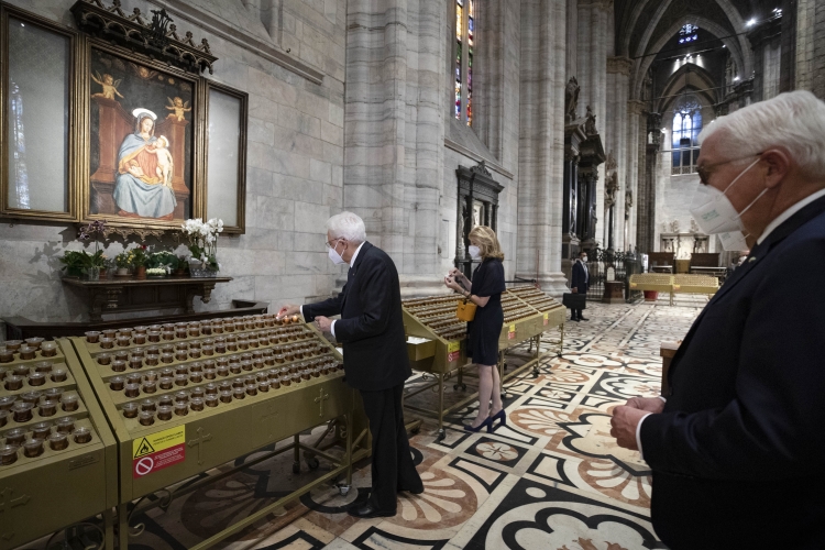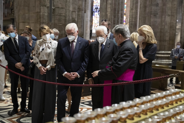 Il Presidente Sergio Mattarella e la Sig.ra Laura, con il Presidente della Repubblica Federale di Germania Frank-Walter Steinmeier e la Signora Elke Büdenbender in visita al Duomo di Milano