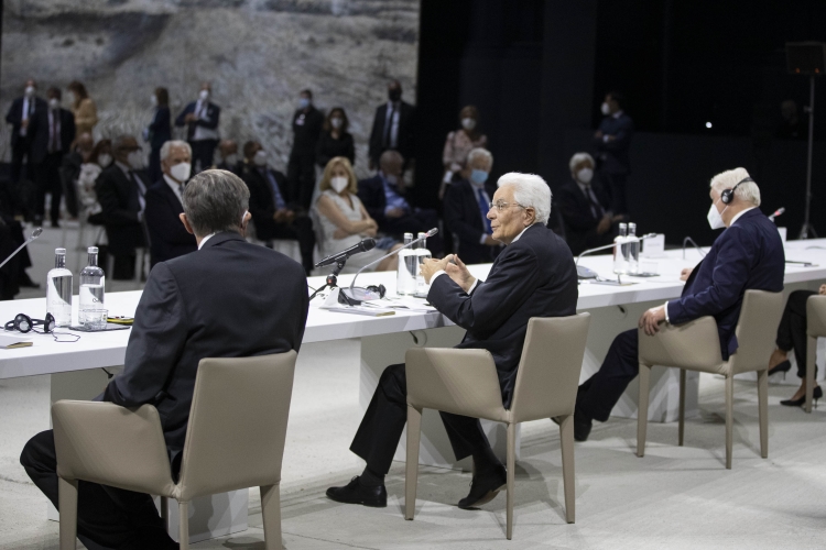 Il Presidente Sergio Mattarella e il Presidente della Repubblica Federale di Germania Frank-Walter Steinmeier al panel di studio dal titolo “La rinascita al tempo del Covid”