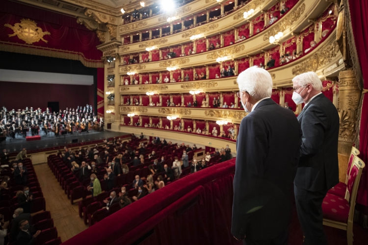 Il Presidente Sergio Mattarella e il Presidente della Repubblica Federale di Germania Frank-Walter Steinmeier al Teatro alla Scala per il concerto diretto dal Maestro Riccardo Chailly,Sinfonia n.9 in re minore op. 125 di Ludwing van Beethoven.