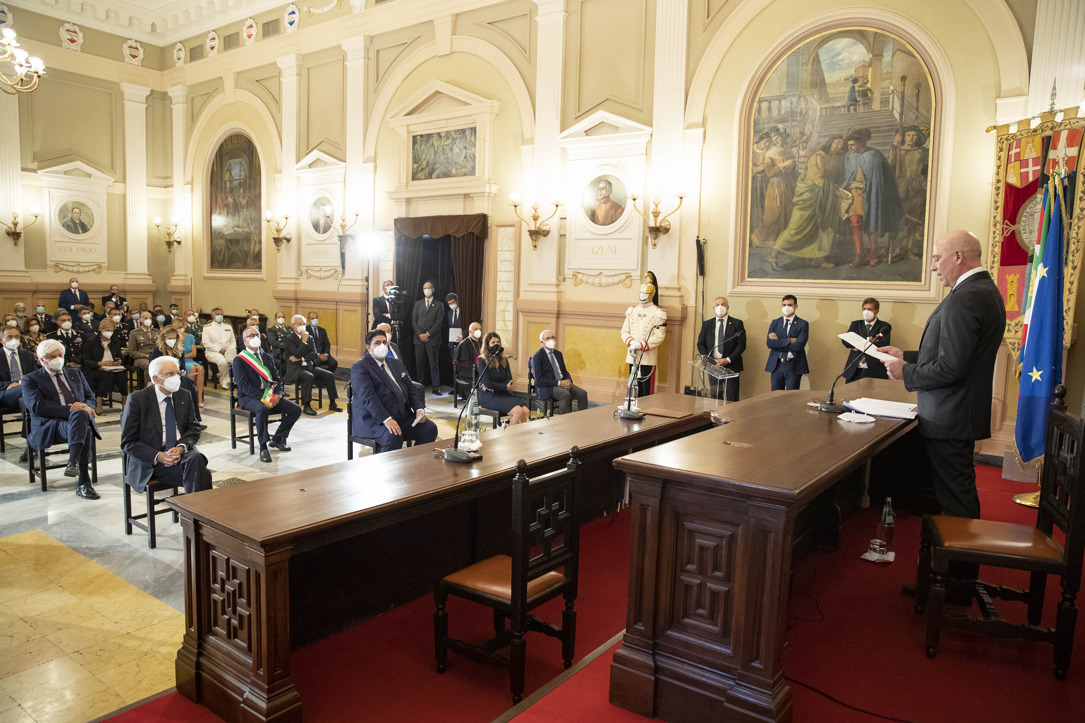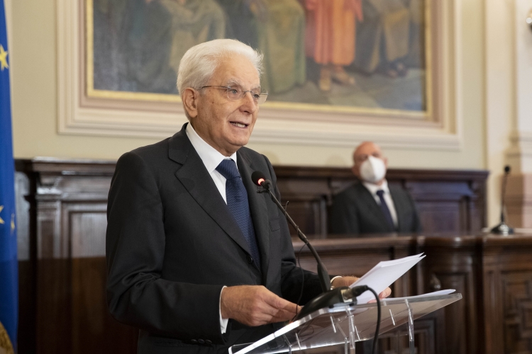 Il Presidente Sergio Mattarella nell’Aula Magna dell’Università degli Studi di Sassari, in occasione della cerimonia di commemorazione del 10° anniversario della morte del Presidente emerito della Repubblica, Sen. Prof. Francesco Cossiga