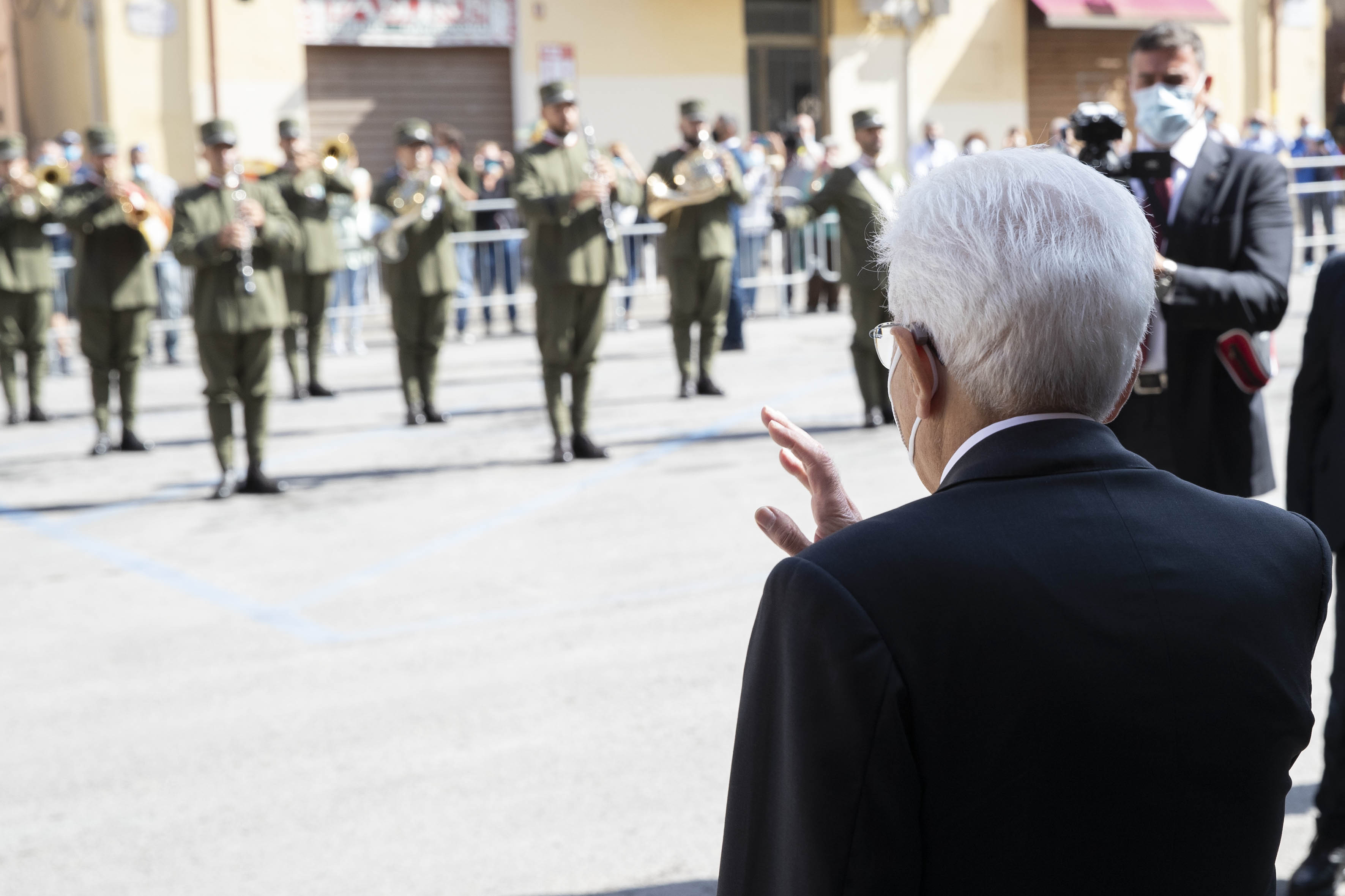 Il Presidente Sergio Mattarella assiste all’esecuzione dell’Inno “Dimonius” cantato e musicato dalla banda della Brigata Sassari, in occasione della cerimonia di commemorazione del 10° anniversario della morte del Presidente emerito della Repubblica, Sen. Prof. Francesco Cossiga