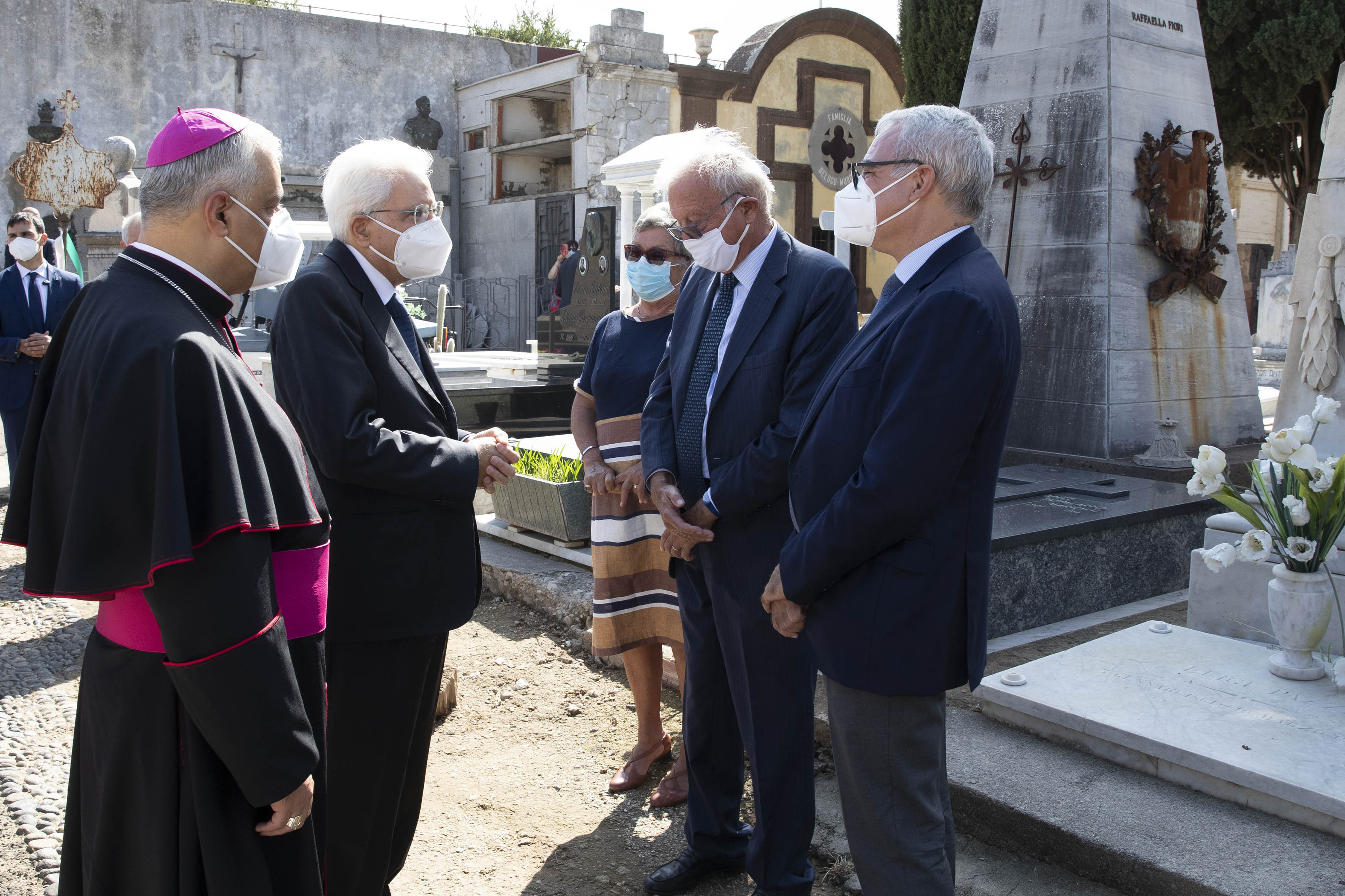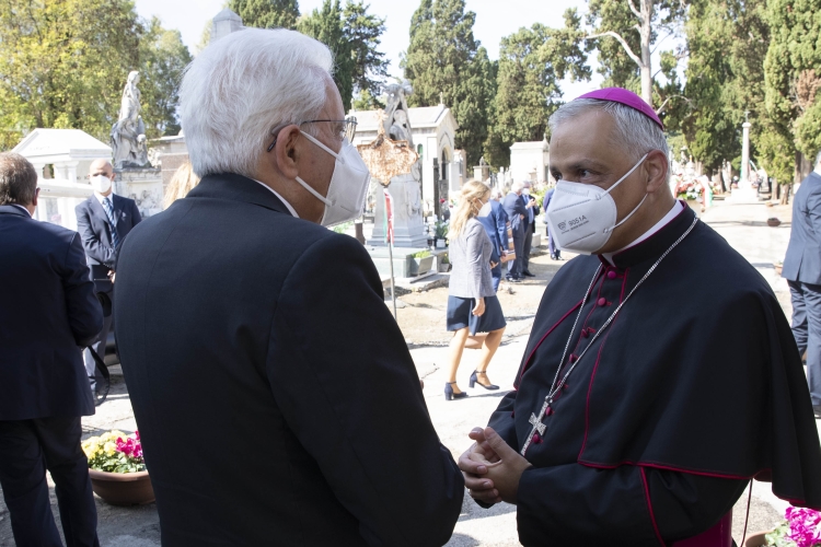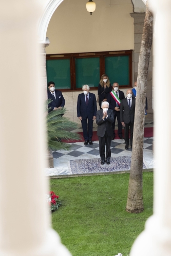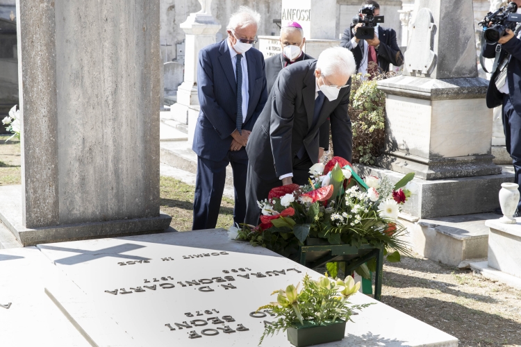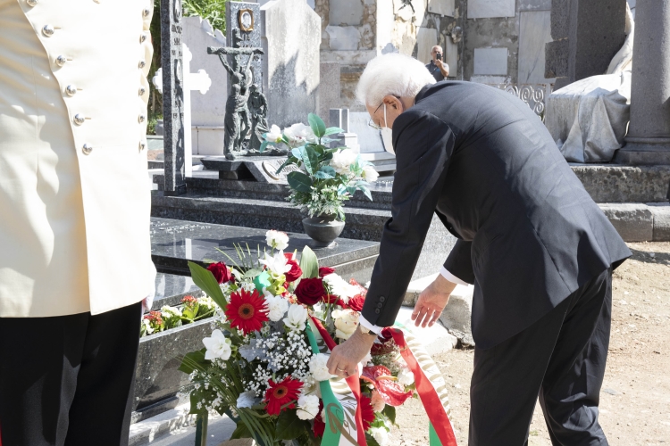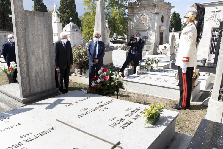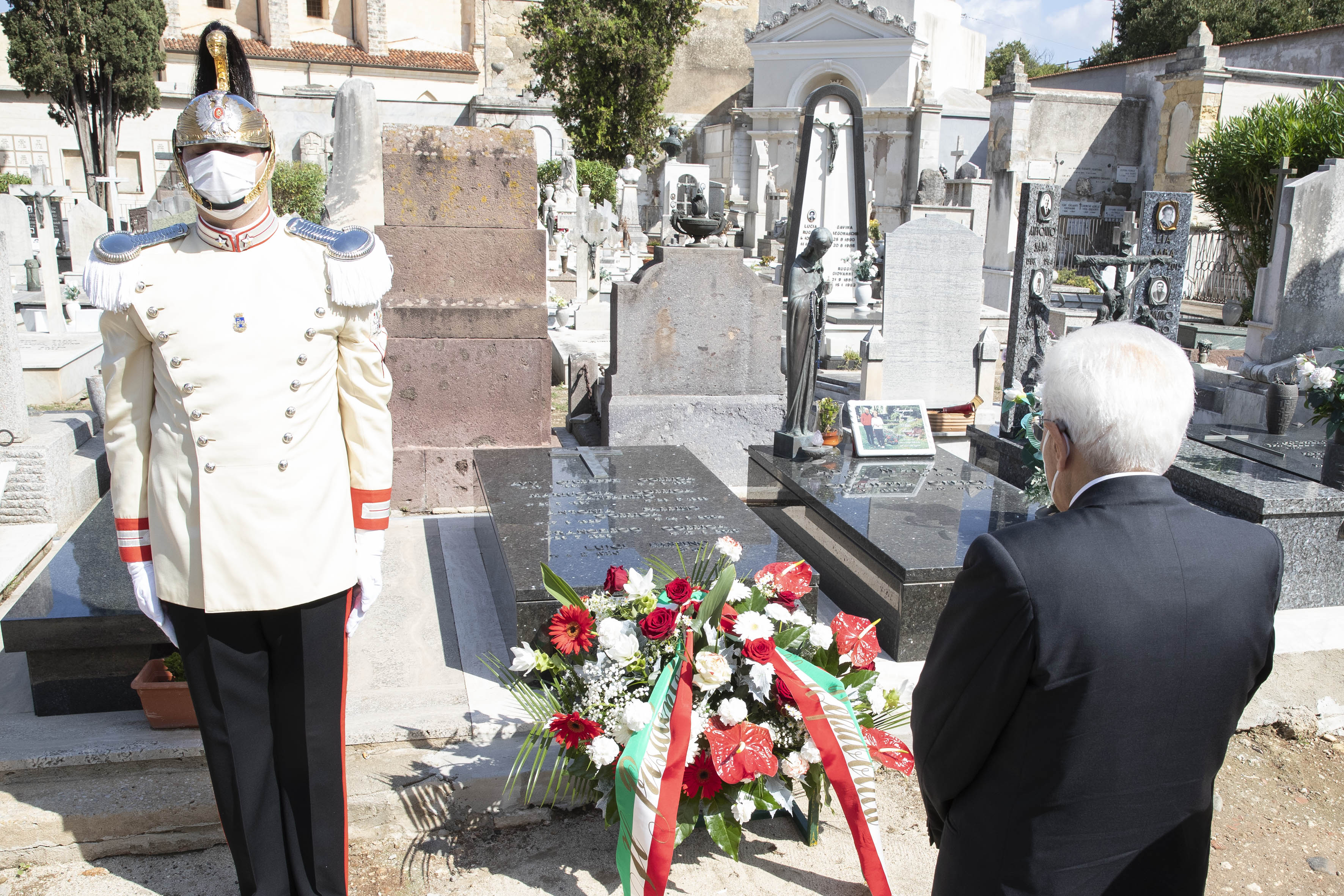Il Presidente Sergio Mattarella al cimitero comunale di Sassari depone un cuscino di fiori sulla tomba del Presidente emerito della Repubblica, Antonio Segni