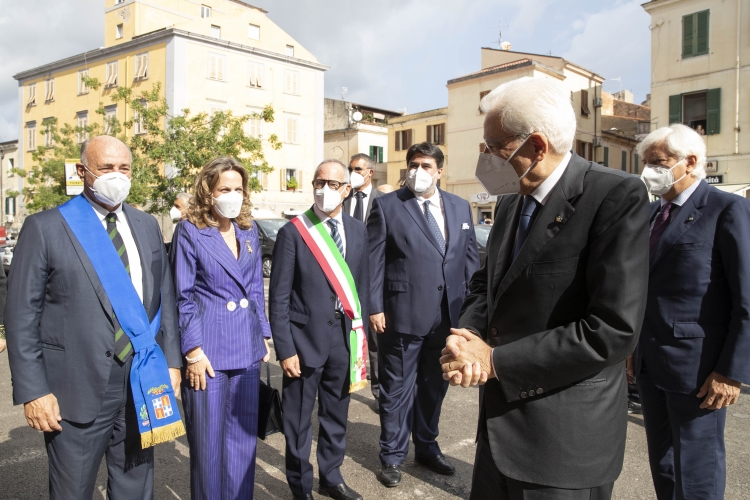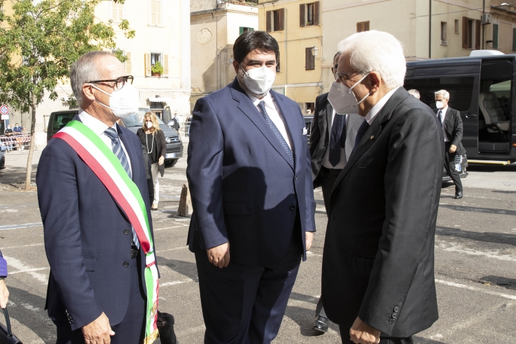 Il Presidente Sergio Mattarella con Christian Solinas, Presidente della Regione Sardegna, e Gian Vittorio Campus, Sindaco di Sassari in occasione della cerimonia di commemorazione del 10° anniversario della morte del Presidente emerito della Repubblica, Sen. Prof. Francesco Cossiga