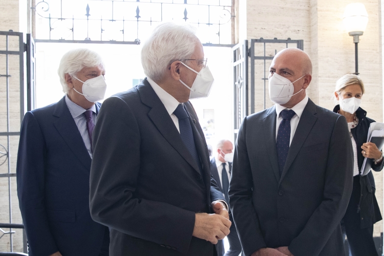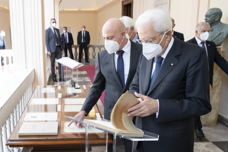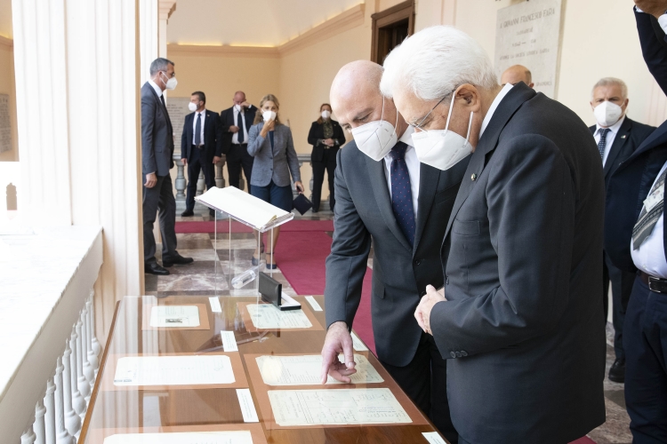 Il Presidente Sergio Mattarella con Massimo Carpinelli, Rettore dell’Università degli Studi di Sassari, in occasione della cerimonia di commemorazione del 10° anniversario della morte del Presidente emerito della Repubblica, Sen. Prof. Francesco Cossiga