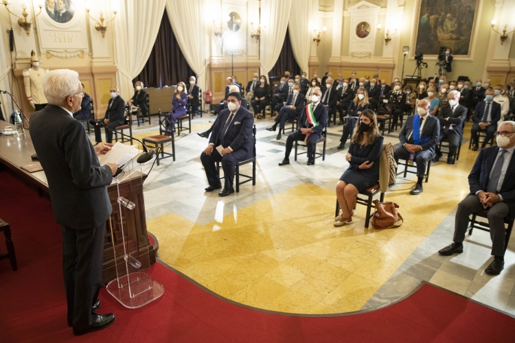 Il Presidente Sergio Mattarella nell’Aula Magna dell’Università degli Studi di Sassari,in occasione della cerimonia di commemorazione del 10° anniversario della morte del Presidente emerito della Repubblica, Sen. Prof. Francesco Cossiga