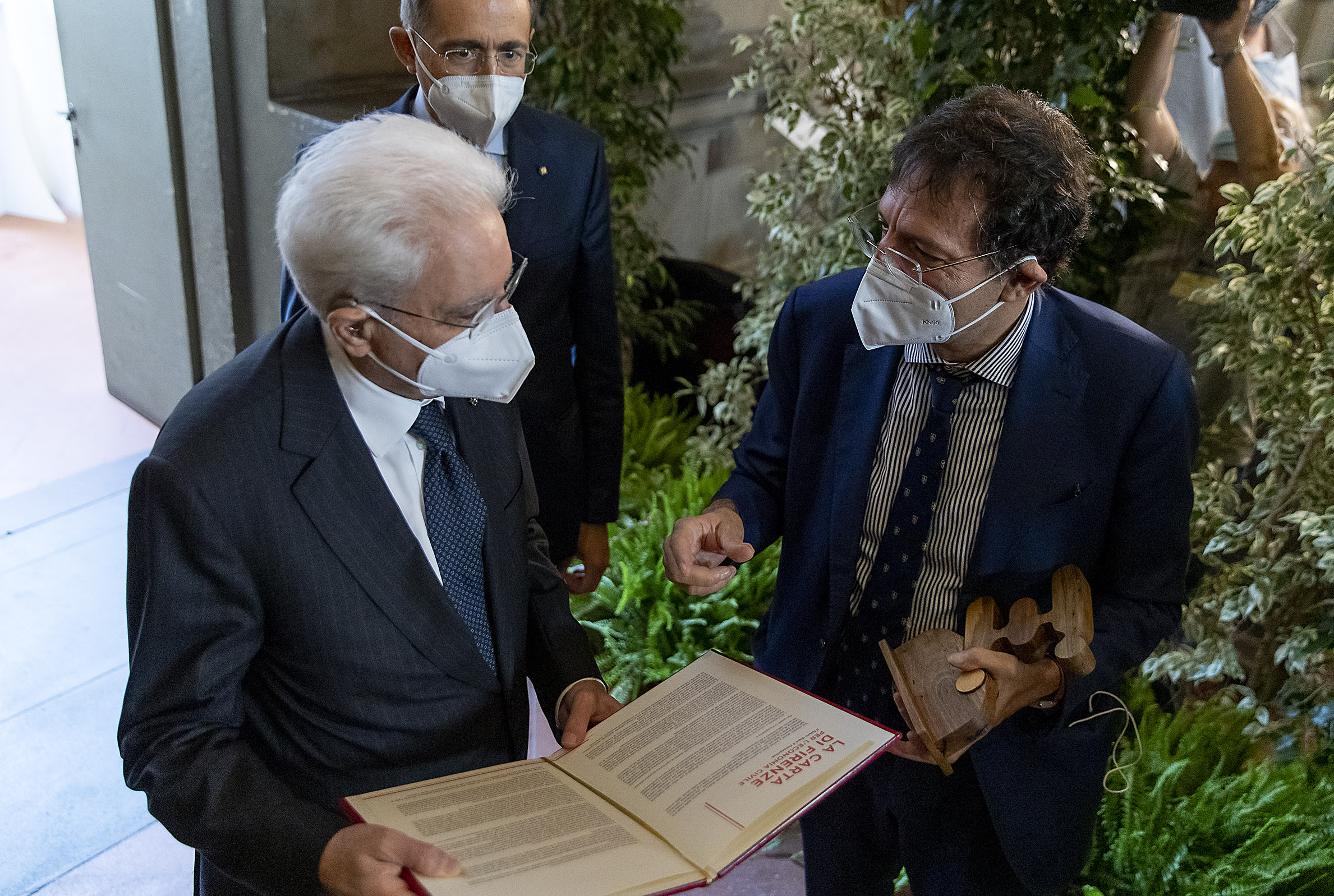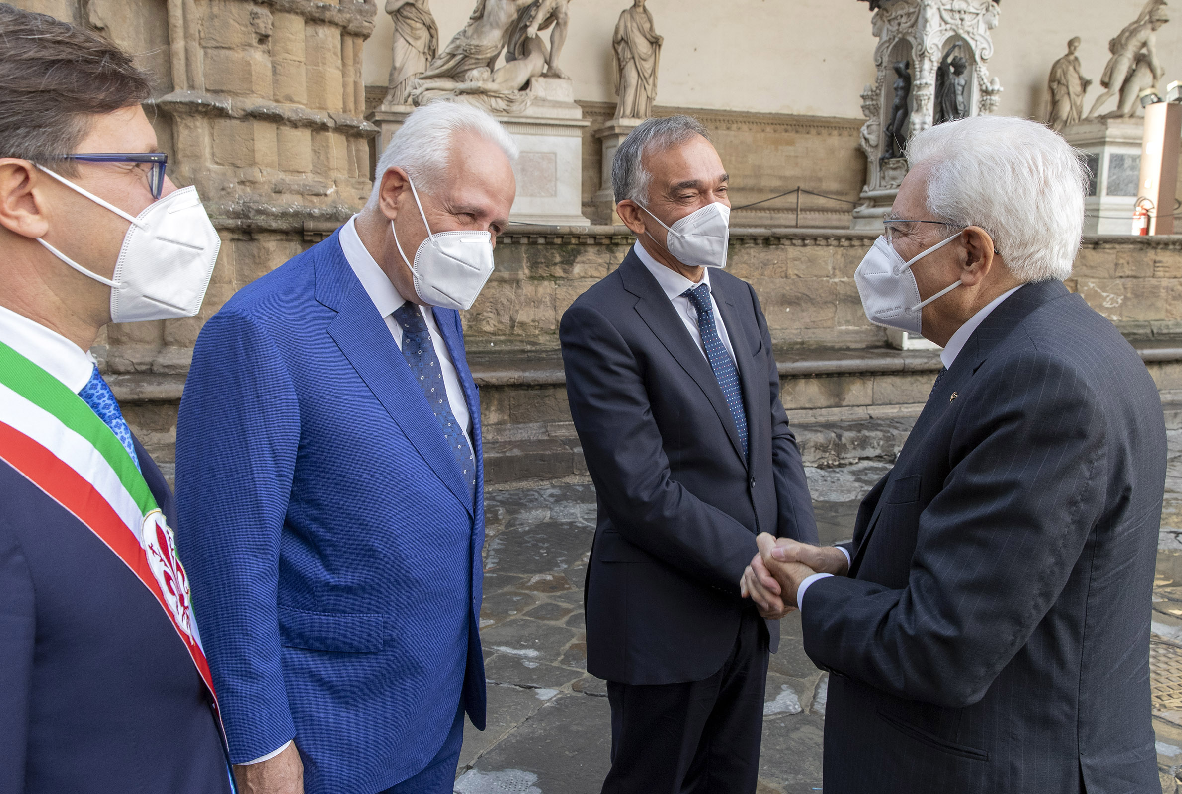 Il Presidente della Repubblica Sergio Mattarella con Enrico Rossi, Presidente della Regione Toscana; Eugenio Giani, Presidente del Consiglio regionale e Dario Nardella, Sindaco della Città Metropolitana di Firenze, in occasione del Festival Nazionale dell’Economia Civile