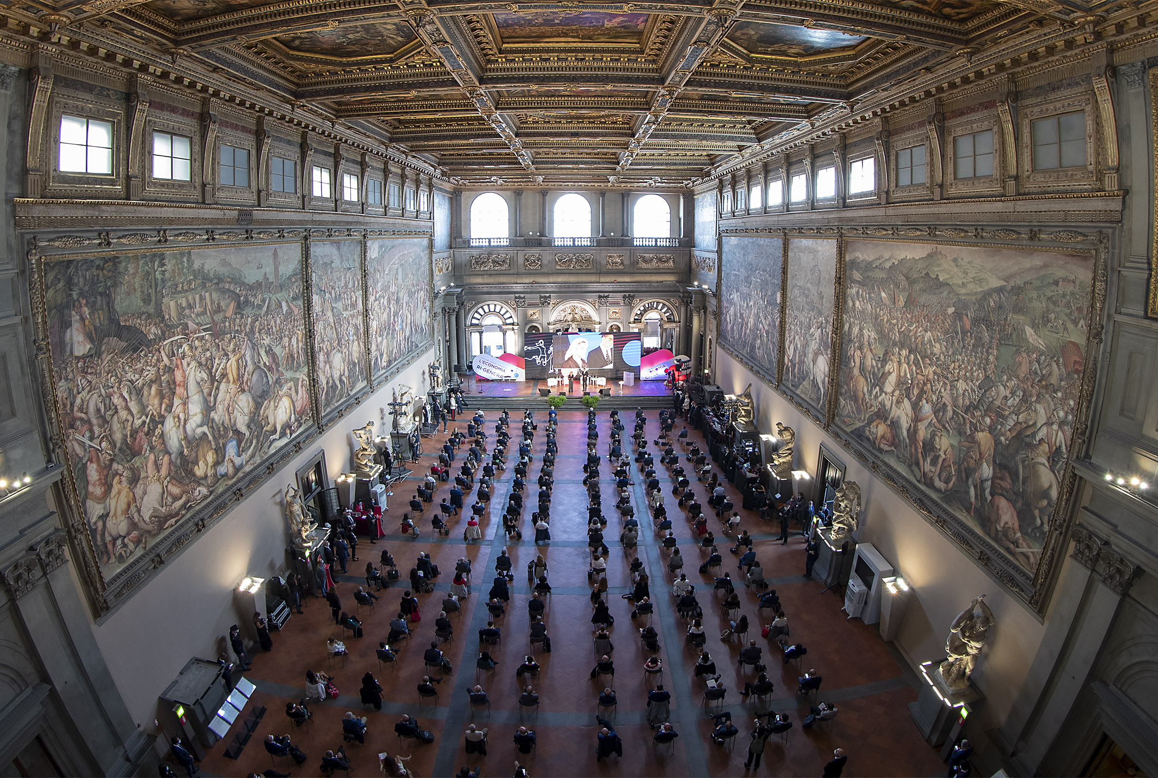Il Presidente della Repubblica Sergio Mattarella con Enrico Rossi, Presidente della Regione Toscana, Eugenio Giani, Presidente del Consiglio regionale e Dario Nardella, Sindaco della Città Metropolitana di Firenze, in occasione del Festival Nazionale dell’Economia Civile