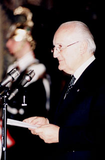 Il Presidente Oscar Luigi Scàlfaro mentre pronuncia un discorso al Quirinale