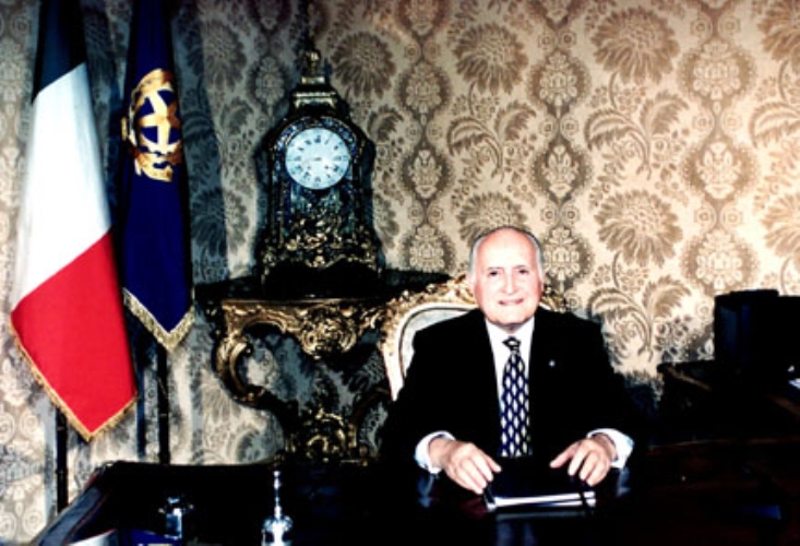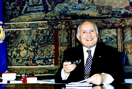 Il Presidente Oscar Luigi Scàlfaro nel suo studio al Quirinale