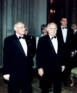 Il Presidente della Repubblica Scàlfaro con il Sen. Francesco Cossiga. 21 dicembre 1993