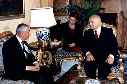 Il Presidente della Repubblica Oscar Luigi Scàlfaro durante un'udienza al Quirinale