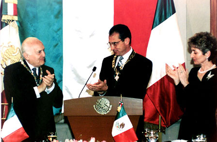 Il Presidente della Repubblica Oscar Luigi Scàlfaro durante la visita di Stato in Messico. 28 marzo 1996.