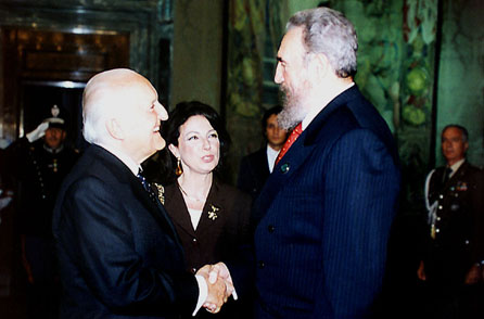 Il Presidente della Repubblica Oscar Luigi Scàlfaro con il Presidente della Repubblica di Cuba Fidel Castro. 16 novembre 1996