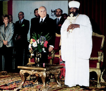 Il Presidente Scàlfaro con Sua Santità Abune Paulos Patriarca della Chiesa Ortodossa di Etiopia. Addis Abeba, 25 novembre 1997