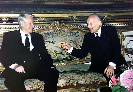 Il Presidente Scàlfaro a colloquio con il Presidente della Federazione Russa Boris Eltsin in visita ufficiale in Italia. 9 febbraio 1998