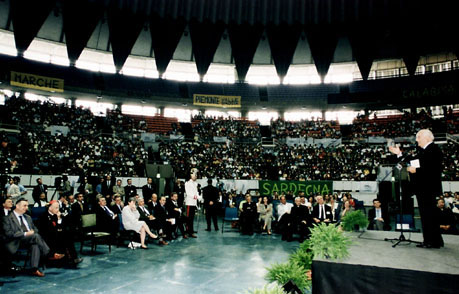 Il Presidente Scàlfaro alla cerimonia dell'incontro Nazionale Adulti dell'Azione Cattolica. 5 settembre 1998