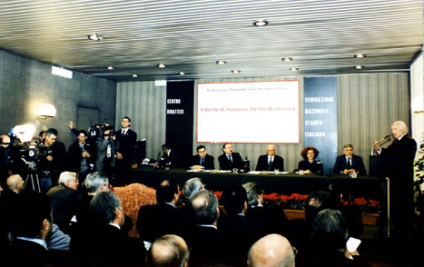 Il Presidente Scàlfaro al convegno "Giuseppe Saragat 1898-1998" alla Camera dei Deputati. 11 novembre 1998