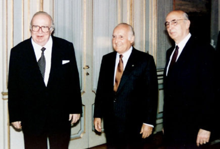 Il Presidente con Spadolini e Napolitano, Presidenti del Senato e della Camera. 26 luglio 1993
