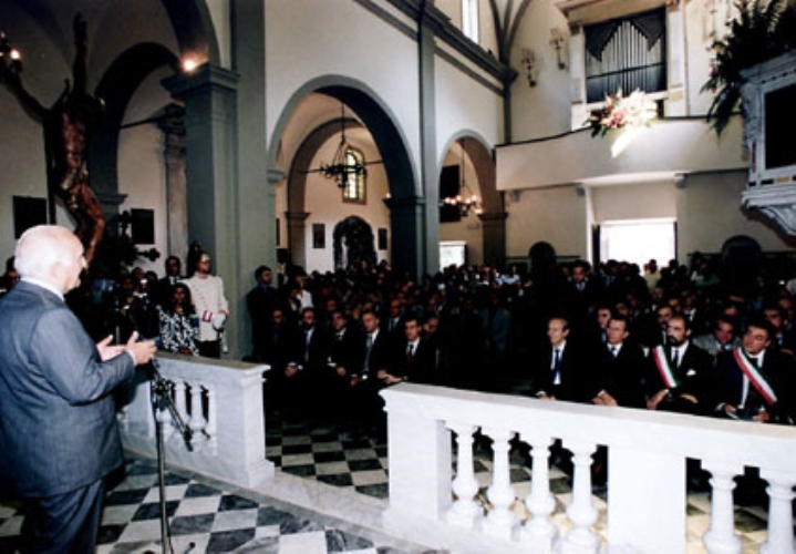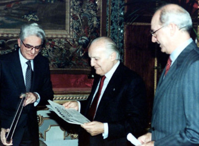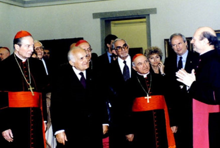 Il Presidente Scàlfaro alla inaugurazione della Biblioteca Pinacoteca Ambrosiana, a fine lavori di restauro. Milano 20 ottobre 1997