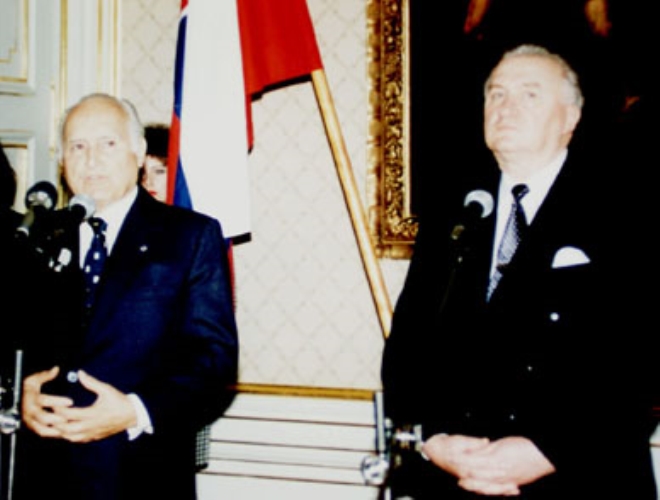 Il Presidente Scàlfaro con il Presidente della Repubblica di Malta Sig. Tabone 11 ottobre 1993