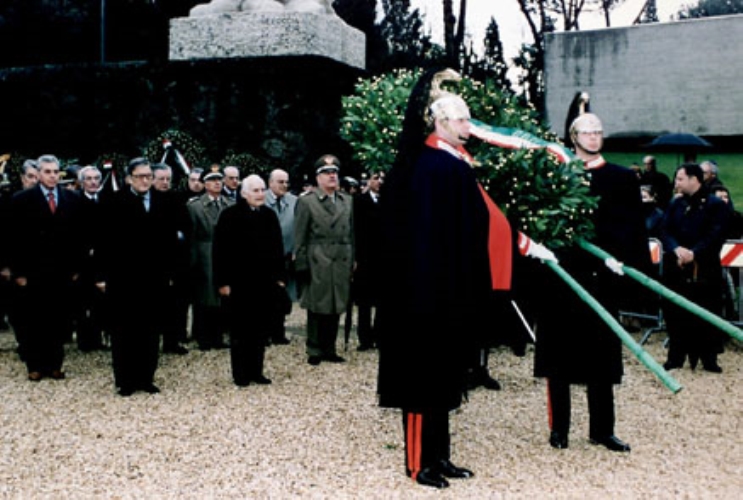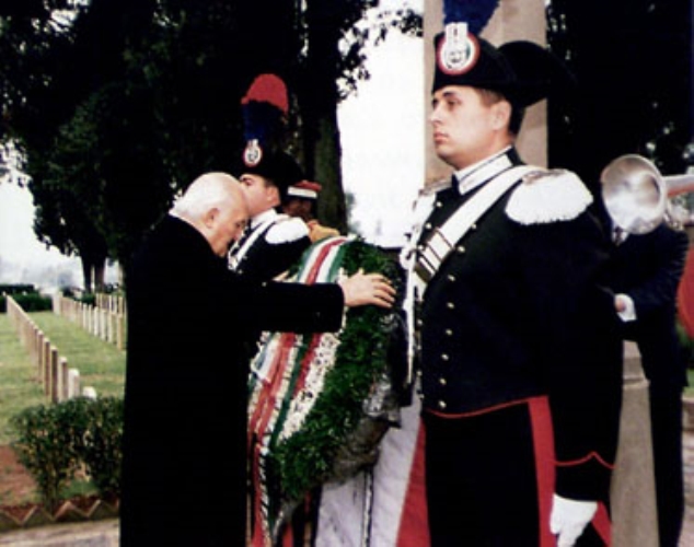 Il Presidente della Repubblica Oscar Luigi Scàlfaro depone una corona d'alloro alle Fosse Ardeatine. 4 novembre 1998