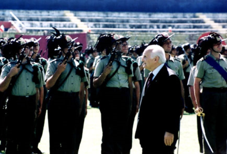 Il Presidente Scàlfaro alla cerimonia del 162° anniversario della Costituzione del Corpo dei Bersaglieri. Caserta 18 giugno 1998