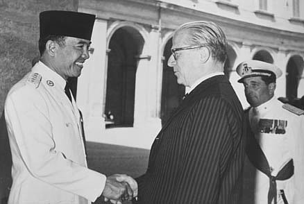 Il Presidente Gronchi con il Presidente indonesiano Soekarno.