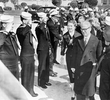 Il Presidente Gronchi in visita alla base navale di Almeda, in California
