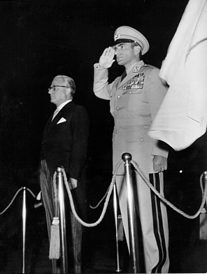 Il Presidente Gronchi al suo arrivo a Teheran con Mohamed Reza Pahlevi, Sciá di Persia