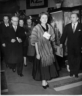 Il Presidente della Repubblica Giovanni Gronchi con la moglie alla prima del film "Italia K2"