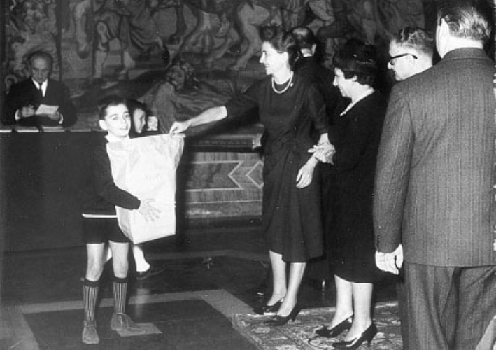 Il Presidente Gronchi e la moglie Carla Bissatini nel giorno dell' Epifania