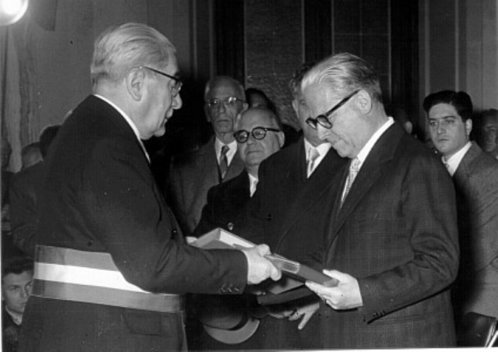Il Presidente Gronchi e il Ministro degli Esteri Gaetano Martino
