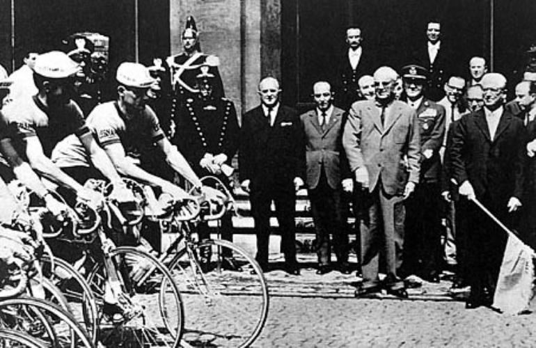 Il Presidente Gronchi, dal Quirinale, dà il via al Giro d'Italia