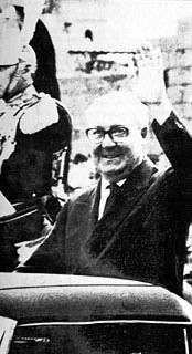 Giuseppe Saragat nella autovettura presidenziale mentre saluta i cittadini