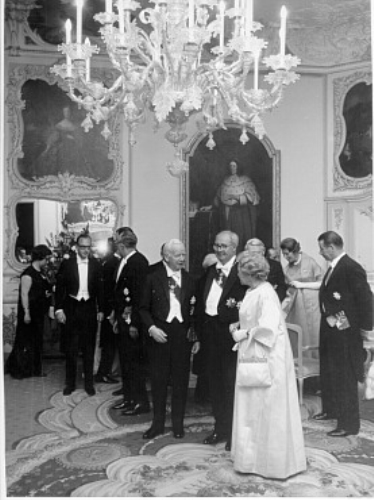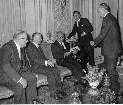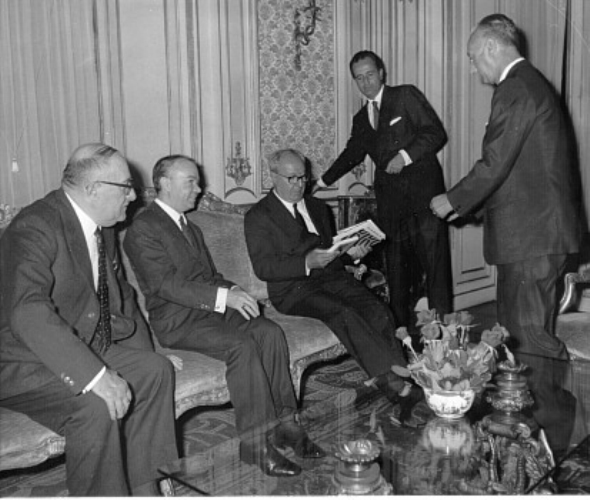 Il Presidente Saragat insieme al Re di Norvegia Olav V, il Moro e Nenni