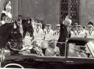 Il Presidente della Repubblica Francesco Cossiga sulla autovettura presidenziale saluta i cittadini