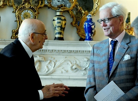 Il Presidente Giorgio Napolitano con Lord Douglas Hurd of Wuestwell, in occasione dell'incontro in Ambasciata