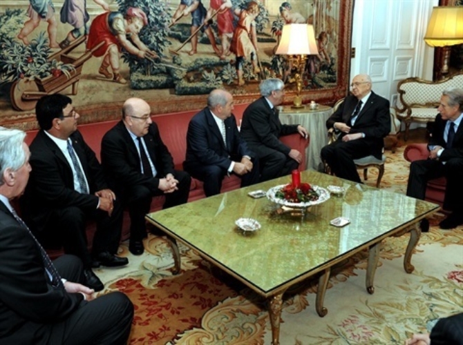 Il Presidente Giorgio Napolitano durante l'incontro con esponenti della collettività italiana COMITES