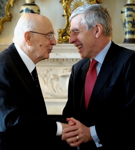 Il Presidente Giorgio Napolitano con il Lord Cancelliere e Ministro della Giustizia, Jack Straw,in occasione dell'incontro in Ambasciata d'Italia