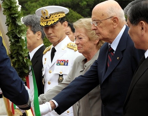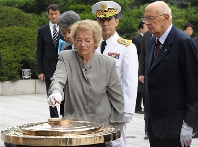 Il Presidente Giorgio Napolitano e la moglie Clio rendono omaggio ai Caduti al Cimitero Nazionale
