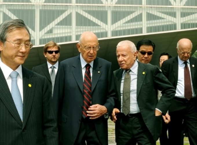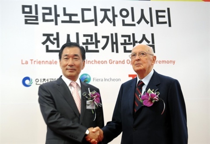 Il Presidente Giorgio Napolitano con il Sindaco di Incheon AHN Sang-soo in occasione dell'incontro alla sede del progetto Milano Design City