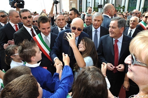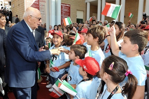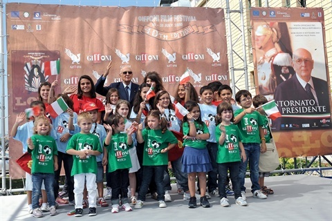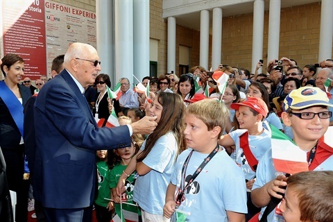 Il Presidente Giorgio Napolitano al termine della cerimonia con i bambini di Giffoni Valle Piana