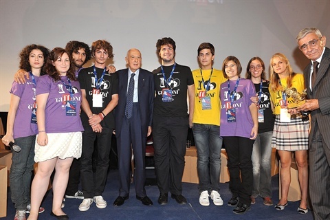 Il Presidente Giorgio Napolitano con i ragazzi al Giffoni Film Festival