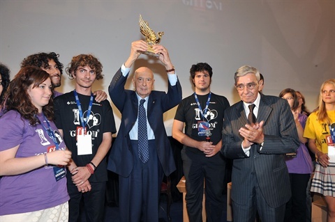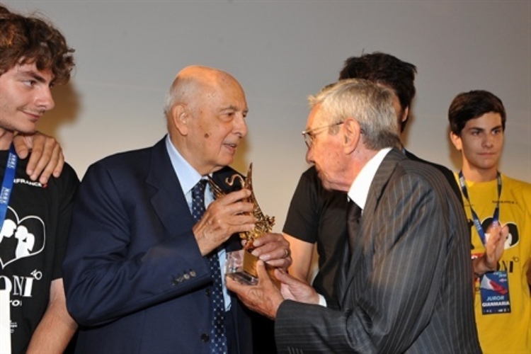 Il Presidente Giorgio Napolitano riceve da Carlo Andria, Presidente del Giffoni Film Festival, il "Grifone d'Oro"