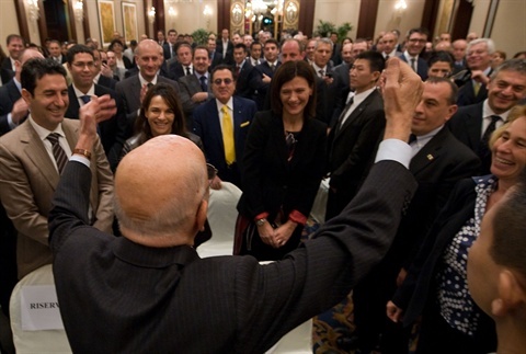 Il Presidente Giorgio Napolitano saluta la comunità italiana di Hong Kong, al termine della visita di Stato in Cina