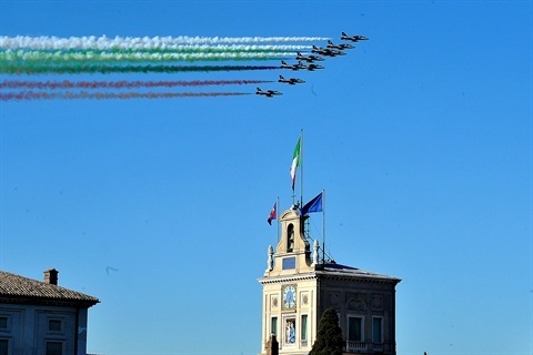 Le Frecce Tricolori sul Palazzo del Quirinale in occasione della ricorrenza del Giorno dell'Unità Nazionale e Giornata delle Forze Armate
