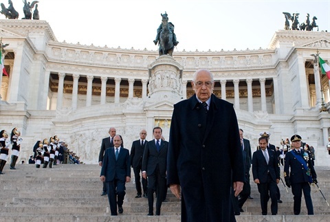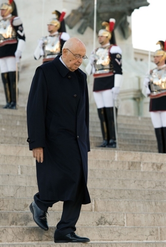 Il Presidente Giorgio Napolitano lascia l'Altare della Patria dopo aver reso omaggio al Milite Ignoto, nella ricorrenza del Giorno dell'Unità Nazionale e Giornata delle Forze Armate