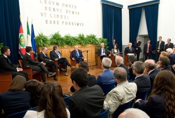 Il Presidente Giorgio Napolitano all'Aula Pessina risponde alle domande degli studenti e dei docenti alla facoltà di Giurisprudenza dell'Università "Federico II"
